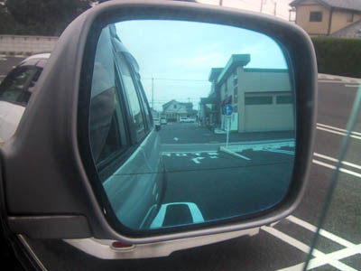 そんなときに雑誌の広告で発見したのがこのミラーです。ミラーの下から1/3くらいのところに線が入っていて、その下は湾曲して、広角を写すようになっています。これで視野が広がります。